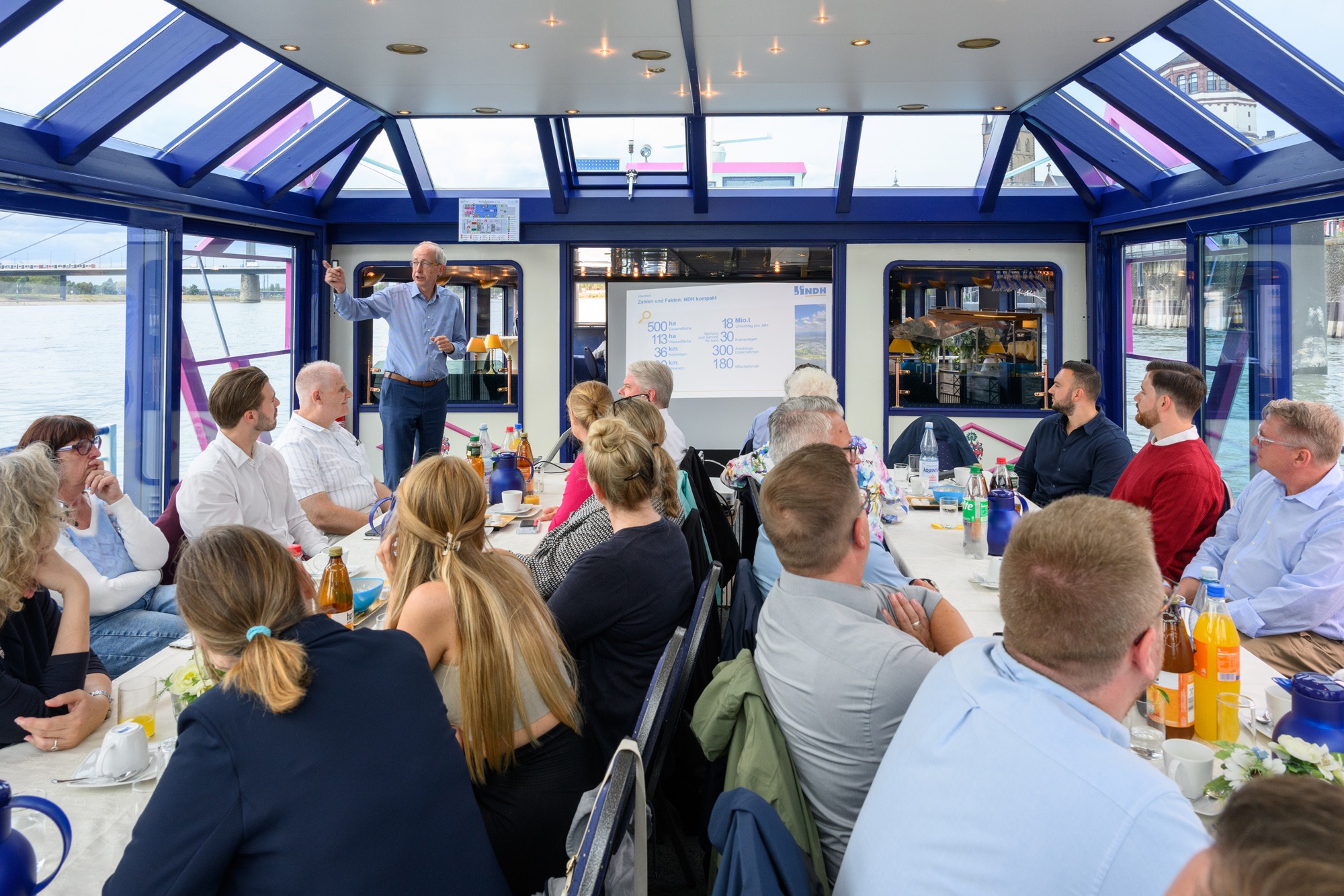 Am 04.09.2025 öffneten die Neuss-Düsseldorfer Häfen (NDH) ihre Tore für die Außenhändler, vereint im Außenhandelsverband Nordrhein-Westfalen (AHV NRW). Im Rahmen des ATC GOES COMPANY (After Trade Club) wurden spannende Einblicke in einen der leistungsstärksten Logistikstandorte Deutschlands gegeben. Die NDH sind 2003 durch die Fusion der bis dahin konkurrierenden Städte Düsseldorf und Neuss entstanden. In einer weiteren Kooperation hat die NDH im Jahr 2012 das operative Geschäft mit der HGK Köln verknüpft und auf die gemeinsame Tochter RheinCargo übertragen.